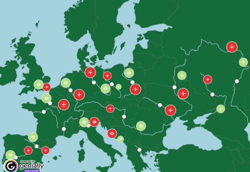Using an interactive digital map created in Genially, participants explore major European rivers.